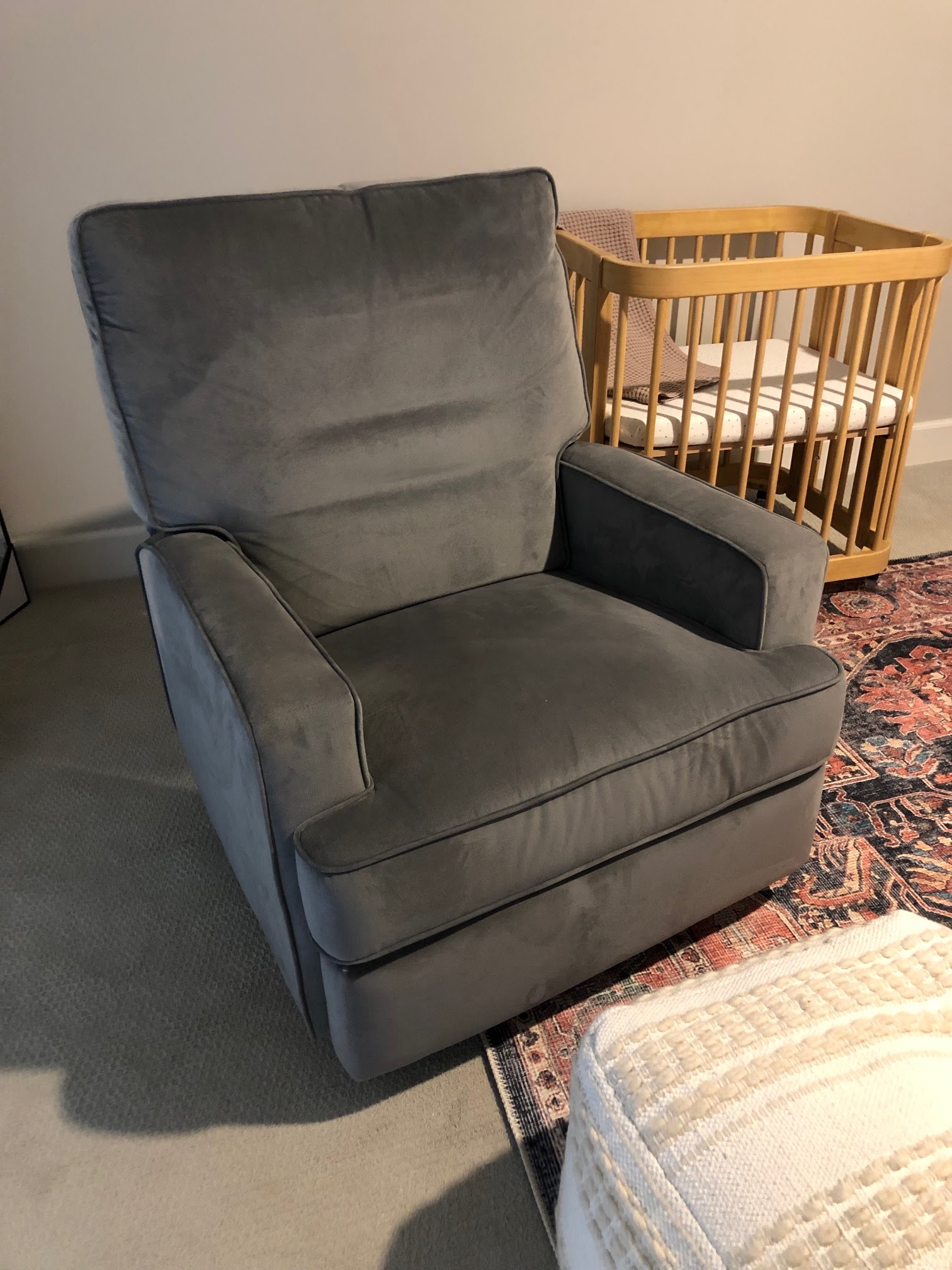 Since my last post we bought a nice glider/recliner that I've had my eye on from facebook marketplace. It's so comfy! I thought with all the hours I have ahead of me to breastfeed, I deserve a comfy chair. We also have a dresser moved from Scarlett's room to our room to put the baby's things in. Our master bedroom is filling up with his/her things and it's SO exciting! We also celebrated Dad's birthday and Easter!